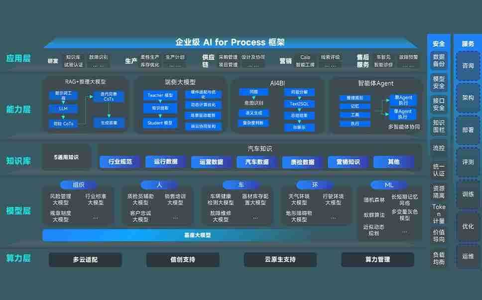 端到端的一站式AI工作空间深度融合了从企业战略规划到日常经营的全流程业务板块,,定向解决车企内部领域多、、、部门多、、、、链条长、、场景碎片化等难题,,,支持车企快速构建以AI为核心的生产力写作体系,,实现任务执行与AI能力的无缝集成与交互
